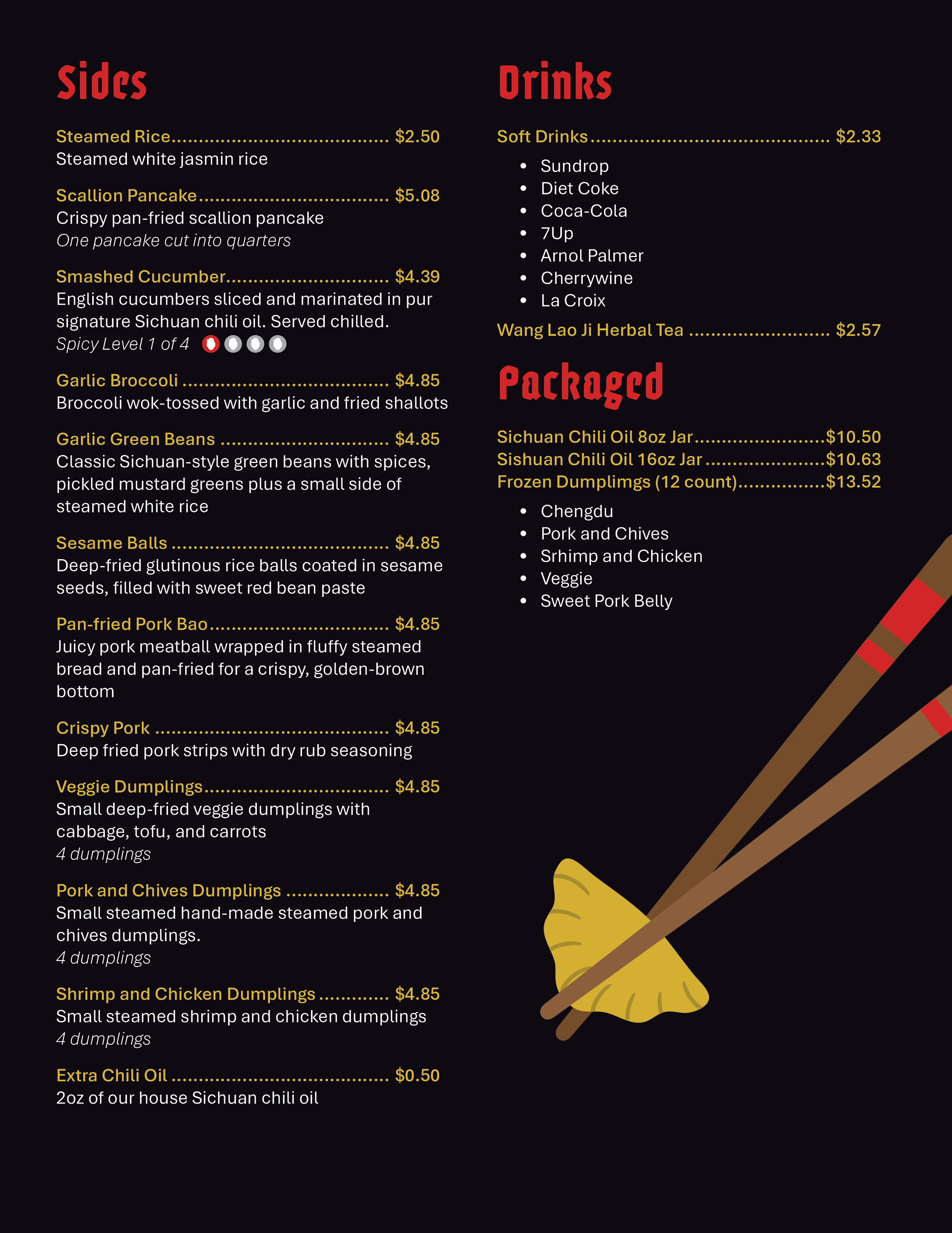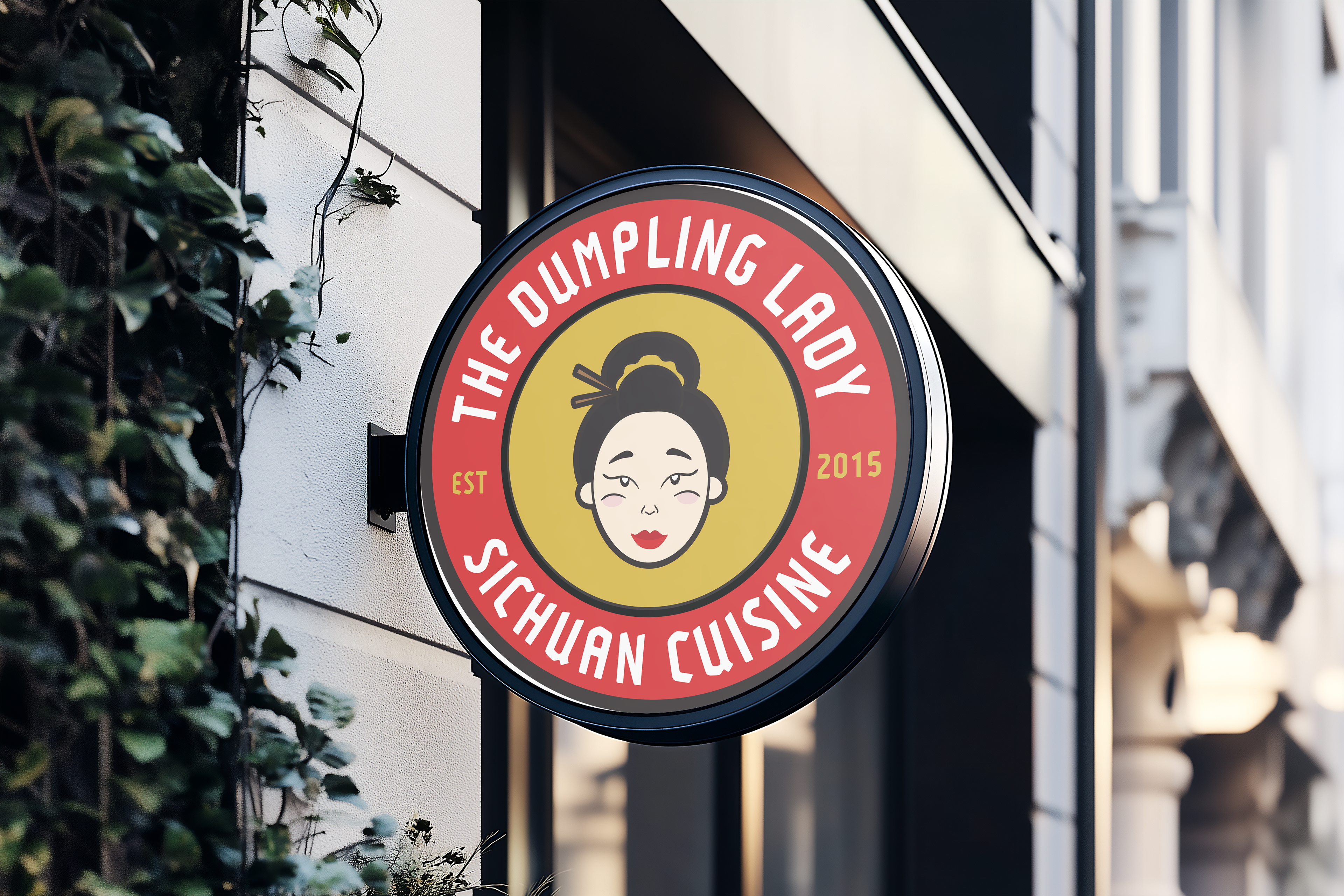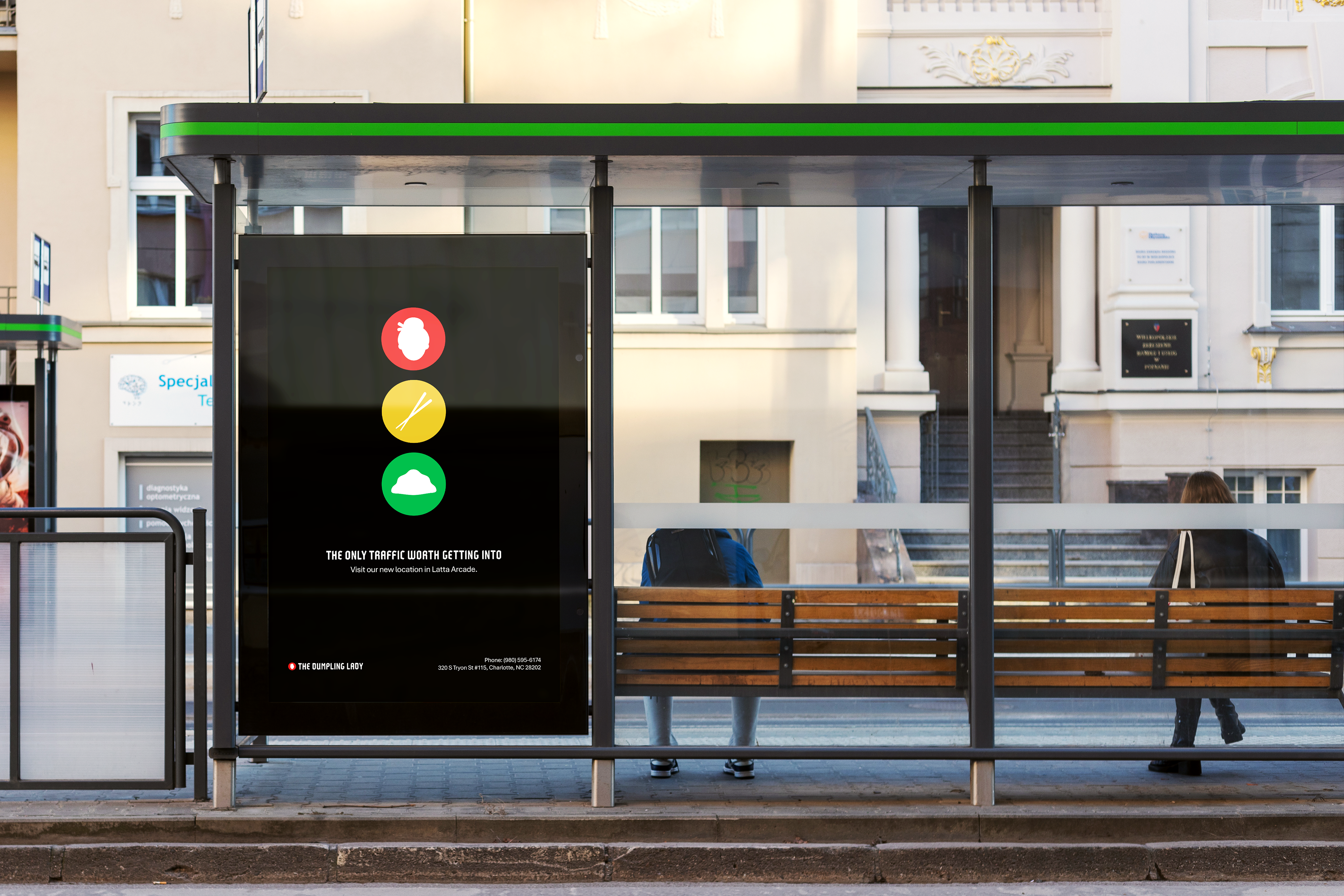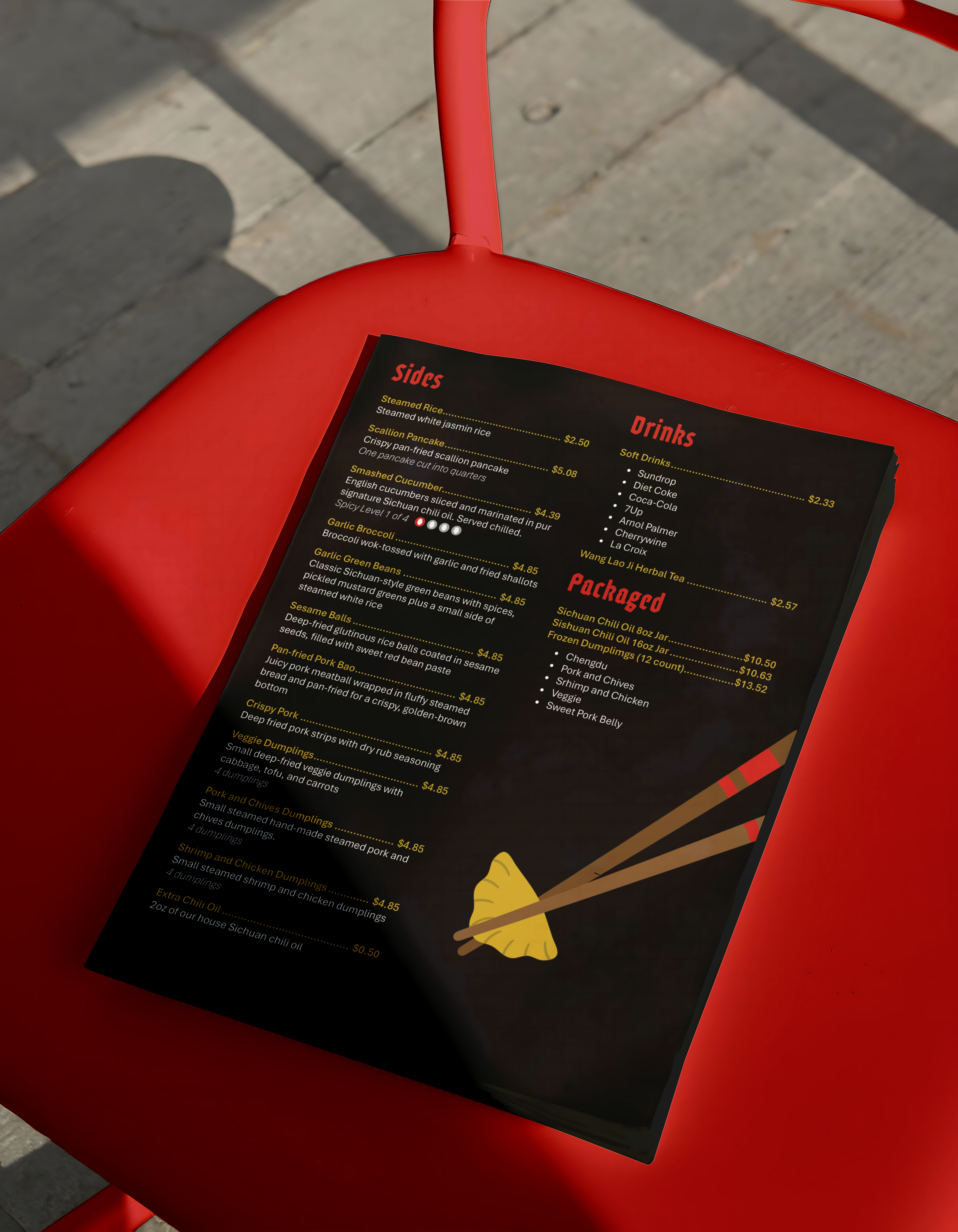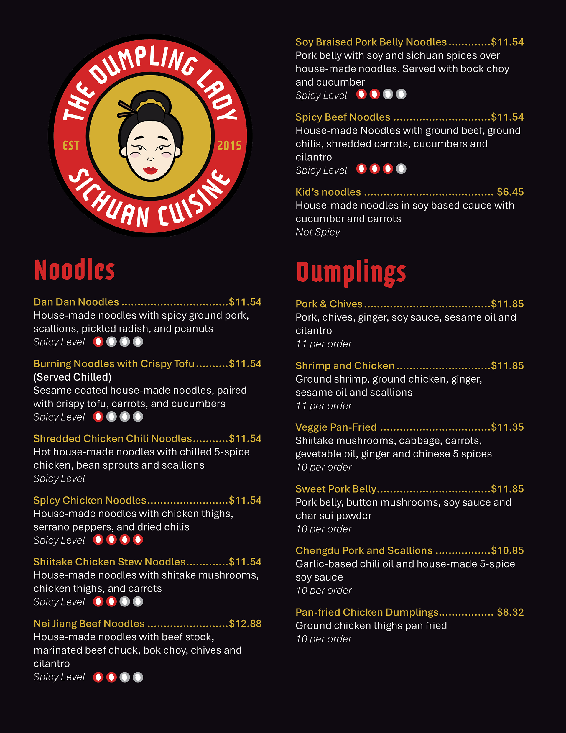 Logo, stationery, ads, and menu for local Charlotte restaurant, The Dumpling Lady.